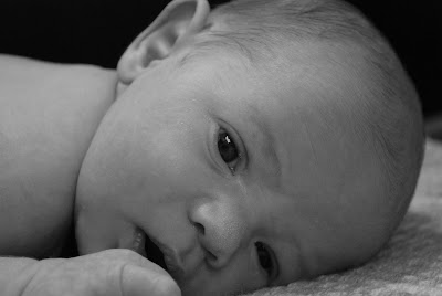 As for us, we're trying to master changing clothes on a squirming infant, as well as staying on top of dirty diapers, dishes, and laundry. We're also trying to stay well-rested and relaxed as we learn all of these new parenting skills. Plus, we just can't seem to keep our eyes off of this little guy....we don't want to miss a second!